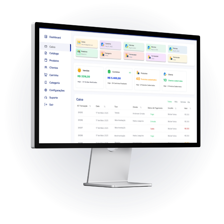 Ideal para Operações completas, Análises detalhadas e Visualização ampla. Aproveite toda a Performance do sistema com uma experiência Fluida, Organizada, Responsiva e Profissional Disponível para Windows.