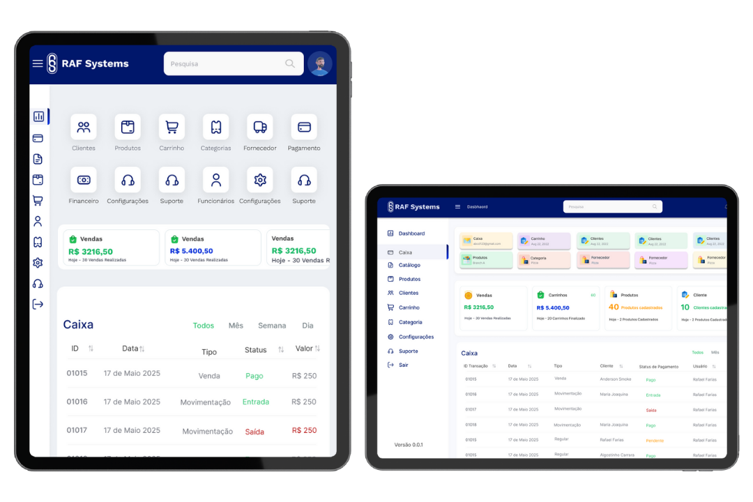 Visual que se Adapta, Funcionalidades que Permanecem. Seu Sistema Completo em Qualquer Tela.